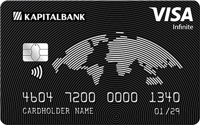 Visa Infinite Kapitalbank - премиальная карта от Kapitalbank на кредитном бине. Сочетание престижа и удобства: премиальный сервис, выгодные условия и привилегии от партнеров – комфортные путешествия и скидки в ресторанах, магазинах, отелях, такси, сервисах путешествий.