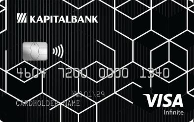 Visa Infinite Kapitalbank - премиальная карта от Kapitalbank на кредитном бине. Сочетание престижа и удобства: премиальный сервис, выгодные условия и привилегии от партнеров – комфортные путешествия и скидки в ресторанах, магазинах, отелях, такси, сервисах путешествий.
